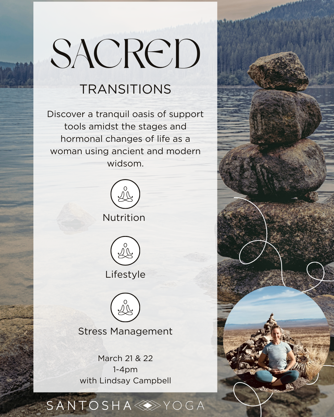 Join loved Santosha teacher Lindsay Campbell (300h Ayurvedic Wellness Coach, 200h-RYT, and NASM-CPT) for a weekend deep dive into wellness on the spring equinox.